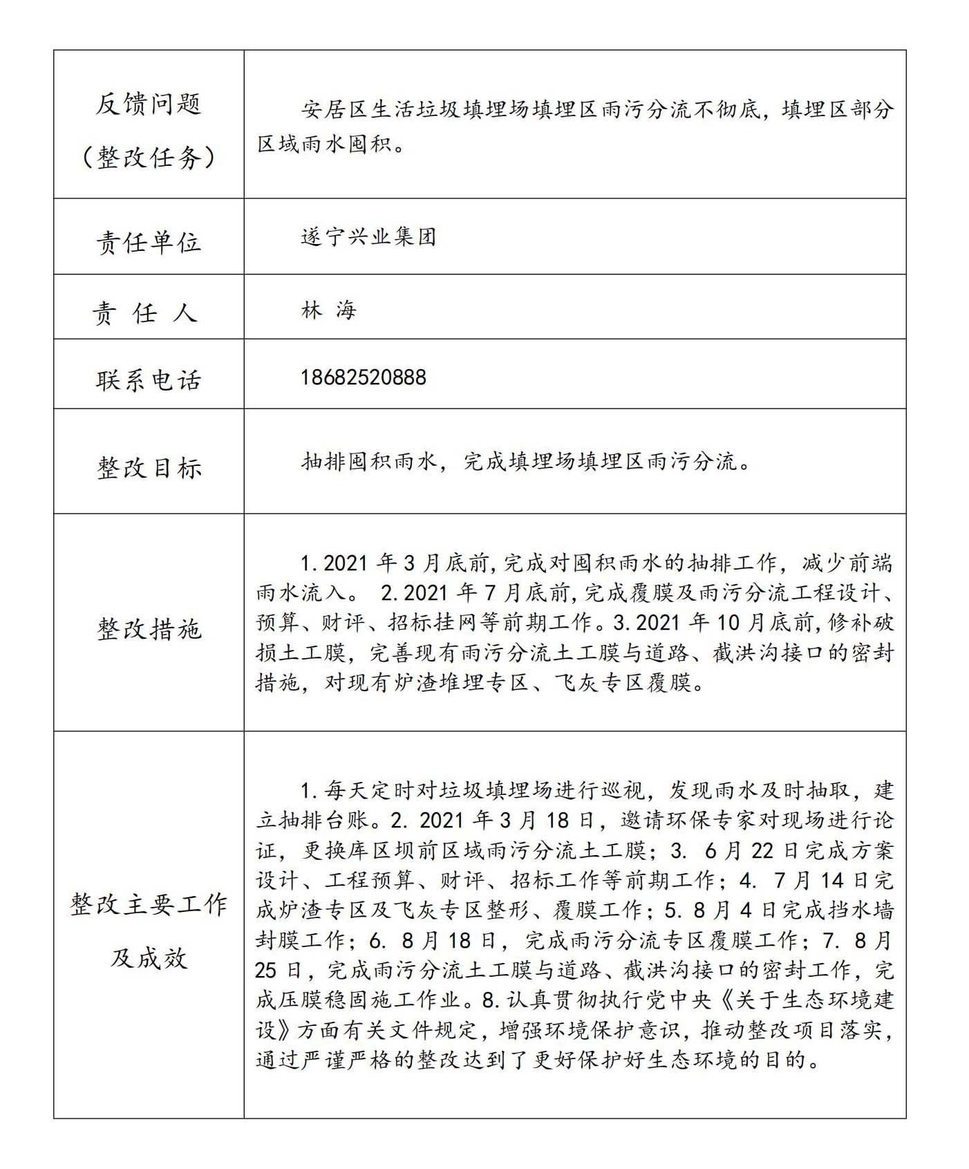 生態(tài)環(huán)境保護督察反饋意見整改任務完成情況公示表